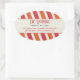 C'est un autocollant qui dit simplement gai. Ce serait un grand ajout à un système d'identité pour une entreprise centrée sur les enfants, y compris un salon pour enfants, une boutique de sucreries, une boutique de crème glacée ou une aire de jeux. Les rayures diagonales orange vif et rouge pourpre lui donnent un peu de fantaisie avec du texte customisé qui se détache dans un panneau crème. Fermez les sacs d'achat de faveur ou de client, à utiliser pour la promotion ou comme enveloppe et scellés de paquet. Disponible en couleurs alternatives avec produits correspondants. com
