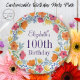 Fun and vibrant colours adorn this personalized paper plate for your 100th Birthday party. These florals were created with watercolor and will go with all kinds of colour schemes. Happy celebrating!