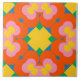 Add a splash of colour and character to your décor with this radiant 6" x 6" ceramic tile designed by Ipsita Roy. Featuring large stylized floral motifs in vibrant orange, pink, yellow, and green, this symmetrical pattern bursts with joy and energy. Inspired by retro and folk styles, this bold geometric design is a delightful addition to eclectic, bohemian, or maximalist spaces.