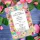 Pinks, peach, vibrant greens and a touch of violet. Date of shower is highlighted in soft peach, but colour can be customized in the design tool.