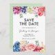 Save the date wedding invitations with gorgeous bright watercolor flowers, add your website address or other details on the back (optional).