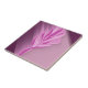 The image features a stylized pink floral design against a gradient background of pink and purple hues.