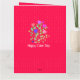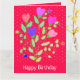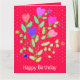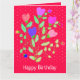 Decorative heart flowered and polka dot designed birthday card, folded style, the bright pink background and stripe details can be changed to any colour. The text can be personalized inside and out to any message to suit any occasion. All elements are removable.