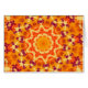 This bright and cheerful mandala kaleidoscope has a pattern in the colours of gold orange and purple flower petals