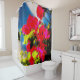 This Shower Curtain will add some colour to your life. The artwork is an original abstract photograph by ZoeSPEAK of a bougainvillea bush in the afternoon sunlight. The flowers on the bush are actually tiny and white. The brightly coloured parts which surround them are called bracts. In this photo, the bracts are a deep hot pink, almost glowing. Green leaves and a cool blue shadow on a pale yellow stucco wall complete this colourful image.