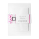 Chic pretty bright dark fuchsia pink and white filigree lace old vintage damask pattern and white faux satin ribbon and silver buckle, with a customizable coloured colourful background, choose your background colour from a range of custom colours to create your own totally different look to compliment your coordinated wedding stationery set. This is elegant sophisticated, and stylish plain simple customizable wedding invitation belly band, easily personalized with the bride and grooms names or monograms to the templates to create your own classy unique modern contemporary feminine girly lacy patterned custom product for your special marriage occasions, events and celebrations. Visit the PERSONALIZED_ WEDDINGS STORE for matching coordinated wedding suite sets.