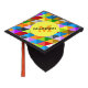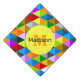 Bright funky colourful triangles pattern Monogram Graduation Cap Topper