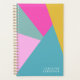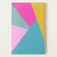 Cute planner with a colourful abstract geometric design in bright and bold colours of hot pink, turquoise, and yellow.