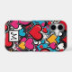 Give your phone contemporary flair with this colorful hearts design, featuring layered red, pink, yellow, and turquoise hearts in a street art style against a black background. The customizable monogram initial adds a personal touch, making it a vibrant statement piece for everyday use. Designed for those who love expressive color and energetic design.