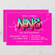A messy bright pink graffiti invitation fit for a nine 9 year old.