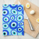 Bright Greek Eye Pattern on Aqua Blue Kitchen Towel