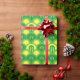 Bright green and yellow scallop art deco pattern wrapping paper