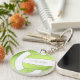 This pretty volleyball keychain features the realistic image of a volleyball that has bright lime green and white panels upon which you can customize her name - the lime volleyball panels are blended with a girly floral kaleidoscopic pattern - by katz_d_zynes