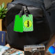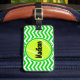 Bright Green Custom Text Tennis Racket Bag Tag: A bright green chevron pattern with a tennis ball in the centre and a custom text box for you to add your own player name, team name or any other text on top! It's a nice way to tag your tennis gear and racket bag and would make a great gift for the whole tennis team!