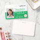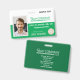 Bright green and white facility entry badge with a bar code on back is ideal for department specific clearance. Easily upload multiple logos and an employee photo. This can hang on a matching lanyard that also holds a company key card. This company badge is versatile for green, white and grey company lanyards. Perfect for engineering, healthcare, or law enforcement facilities where staff identification is important. Perfect for government buildings where employees have different clearances.