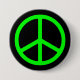 Bright Green Peace Sign on Black Pinback 3 Inch Round Button