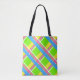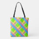 Bright green, pink, yellow, and blue plaid tote bag
