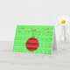 Original artwork consisting of a graphic art style Christmas ornament designed with a retro appearance in red striped tones, set on a background of a bright green vintage pop art pattern, which makes a pretty and festive card. Inside of card states "Wishing you a Merry and Joyful Christmas and a Happy New Year!" for a heartfelt Christmas greeting to anyone. You can add more text as you like or leave as is!
