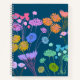 Bright Happy Colourful flowers Dark Teal+Initials Notebook