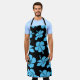 Bright hawaiian seamless pattern with tropical hibiscus flowers on black background in blue colours.