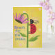 Bright Ladybug sur la carte de voeux à fleurs viol