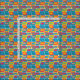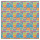 This fabric has a mid-century modern design of bright colours that make rounded rectangles with other rectangles inside formed by a collection of lines.