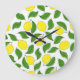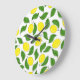 Bright Lemons Green Leaves Pattern Large Clock