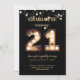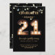 Bright lights 21st birthday invitation with a lit number sign. Other ages also available