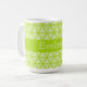 Clusters of intricate, bright lime green swirls in a triangle pattern covers this bright mug, with a solid green centre strip for your customizable text