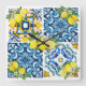 Bright Mediterranean Sicilian Tiles Citrus Lemons Square Wall Clock