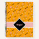 Personalize this colourful memphis art patterned notebook with a name and monogram for a stylish back to school gift. Orange with black and dusty pink accents.. Choose a paper style and colour of the spiral binding to customize it even further, See other other colour choices and coordinating items in this design collection at KidsUnique on Zazzle.