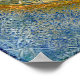 The original artwork for this menorah is a mixed-media painting created with acrylic paint, modelling paste, and paper by contemporary Jewish artist Meredith Gould.