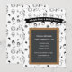 This modern graduation invitation features a repeating pattern of iconic scientific figures and symbols, with a chalkboard centerpiece framed by a bold banner reading A Bright Mind, A Brilliant Future. Customizable text blocks let you easily edit event details.