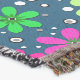 Bright multi-coloured chamomile flowers on a blue throw blanket