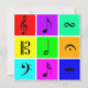 A colourful design that features a collection of music symbols
