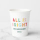Bright colourful navy blue fun modern Christmas party decor family all is bright paper cup.