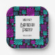 Bright Neon Geometric Pattern Black Birthday Paper Plate