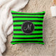 Bright Neon Lime Green and Black Stripes Throw Pillow