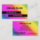 Simple and clear business card with a bright neon rainbow update. This business card has modern style and typography, bright colours to get you noticed, and social media icons that are removable. There are additional social media app icons hidden in the outside layer that you can replace or add to the shown icons- just click the "personalize" button then edit in the design tool to customize with the appropriate social icons. Don't forget to check out the matching items in the collection!