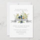 Featuring rustic leaves, berries, flowers and acorns painted in delicate palette of watercolor sage green and greys, with solid blue flowers this stunning set of autumn inspired wedding Invitation makes a gorgeous choice for chic celebreation in winter ar autumn. Cards reverse to a solid deep blue.