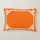 Decorative vivid tangerine orange and white Greek Key style geometric rectangular border accent pillow.