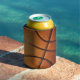 Pictured on this stubby cooler in full print is a bright orange basketball,