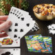 A bright orange koi fish swims among blue water and green lily pads and yellow flowers in a photographic image of mosaic tile art on this pretty playful deck of playing cards. Personalize these colourful playing cards with Initials or a name. This is one of multiple coordinating ceramic tile design with original art photography by JLW_PHOTOGRAPHY.