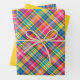 Bright Orange, Pink, Blue, Yellow & Green Plaid Wrapping Paper Sheet
