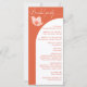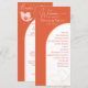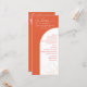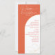 A modern wedding program in trendy bright orange and simple white. This shade of orange is called Verona Sunset. Details in faux gold, a silhuette of a delicate flower. Modern typography and design details of arched shapes.