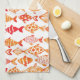 Bright Orange Watercolor Fish Pattern Kitchen Towel