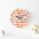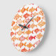 Bright Orange Watercolor Fish Pattern Large Clock