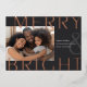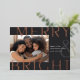 A modern and colourful holiday card featuring a horizontal or landscape-oriented photo with "Merry & Bright" overlaid in oversized rose gold foil lettering. Personalize with your custom holiday greeting, family name, and the year. A chic and modern minimalist choice for your Christmas 2022 cards.