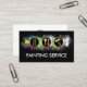 A black wall features a colorful paint splatter design. Here lies three gold painting equipment icon logos. Near the base of the card is your business name which you can change.
