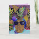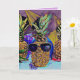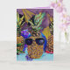 This party pineapple is ready for the birthday celebration. Sporting dark shade sunglasses and cheerful bright colours, this fun tropical fruit will generate smiles all around. The standout colours in this design are mauve, violet, magenta purple, cobalt and artic blue, Tuscan sun and canary yellow. The inside greeting reads: May your special day be filled with great fun and your year filled with true happiness. Be sure to add the Month and Year to the back of the card.
